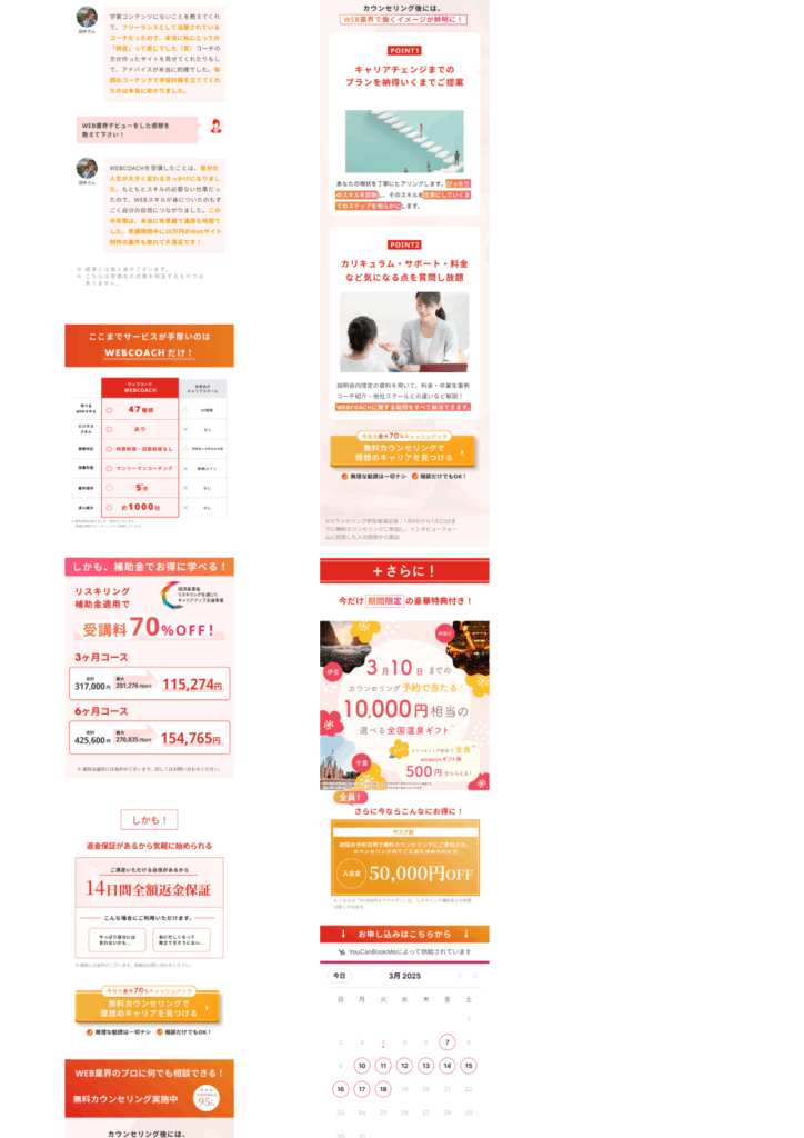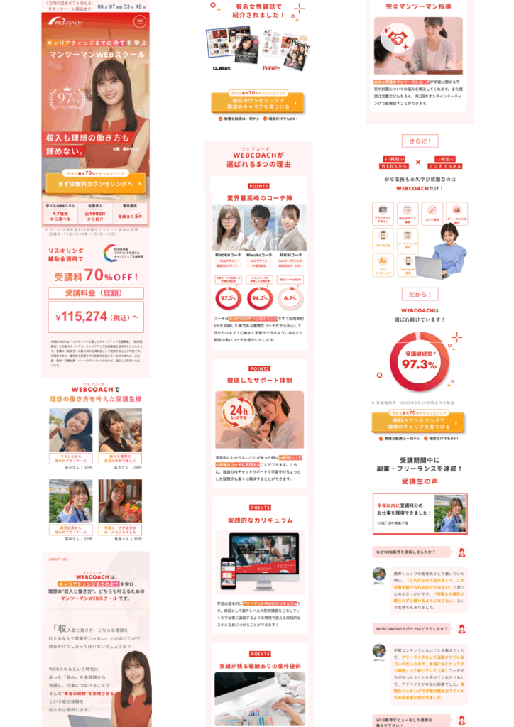 ランディングページ制作 2025年11月8日 最終更新日時 : 2025年11月8日 yurakira 【製作時間】20時間【使用ソフト】Photoshop・illustrator・Figma・HTML・CSS・jquery【担当業務】デザイン・実装【意識した亊】スクロール離脱を防ぐためjqueryで動きをつけたLPを作成しました。